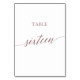 Ce numéro de table seize en calligraphie or rose élégant est parfait pour un mariage simple. Le design neutre présente une carte minimaliste décorée d'une typographie romantique et fantaisiste en faux or rose. La carte est imprimée au recto et au verso (double face). Les autres numéros de table de la collection sont vendus séparément.