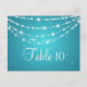 Design élégant "Table Number" de mariage avec design romantique Sparkling Chain Blue et texte de numéro de table personnalisé. Impressionnez votre famille et vos amis avec ce design élégant et moderne. Entièrement personnalisable ! Facile à utiliser et facile à personnaliser. Commandez aujourd'hui !