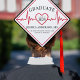 This heartbeat-themed graduation cap topper features a bold red EKG line running across the design, with a heart at the centre. Inside the heart, "Class of 2025" (or any year) is displayed, making it a perfect tribute to a medical or nursing school graduate.