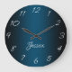 Elegant white numbers and personalized text. Create your own wall clock by changing the ocean blue teal background colour. Customizable black and dark blue ombre background. We accept custom requests if needed.