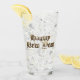 Old English Lettering Happy New Year Gift, Drinking Glass, Tumbler with Faux Gold Old English Typography and your text on the back.