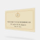 Gold monogram crest and elegant serif fonts;