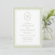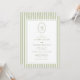 Elegant Blue & Sage Striped Wedding Invitation with an oval monogram crest