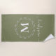 Elegant Olive Green Personalized Wreath Monogram Beach Towel