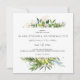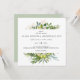 This elegant olive greenery square wedding invitation is perfect for your modern summer boho wedding. It is designed with watercolor emerald green and sage-coloured leaves, touches of botanical gold, blush pink olive flowers, and simple black vintage typography. All these elements combine for a beautiful bohemian feel.