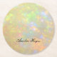 Elegant Opal Stone Texture Modern Script Custom Round Paper Coaster