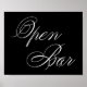 Elegant Open Bar White Script | Horizontal Table Poster
