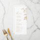 Ces élégants menus mariages modernes présentent des illustrations botaniques florales en faux or, les détails de votre événement apparaissent dans un script romantique et une police serif sophistiquée. Idéal pour un mariage romantique dans le jardin et une mariage moderne de luxe. Voir toutes les pièces correspondantes dans la collection.