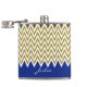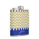 Élégante fiole de boisson faite dans une parties scintillant de couleur or et motif de zigzag de chevron blanc, avec accent bleu, sur le dessus, et un bleu solide, sur le fond, de la fiole. Personnalisez le texte du script blanc pour vous-même ou comme une belle idée cadeau. Idéal pour les cadeaux de demoiselle d'honneur.