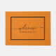 Elegant welcome Doormat with a black script on an orange background. Personalize with your family name or text.