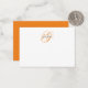 The monogram note card features a refined and minimalist design. It showcases a large, elegant cursive initial in orange, paired with a bold, uppercase name in black text, placed centrally across the initial.