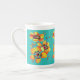 Elegant Orange Flowers - Aqua Bone China Mug