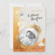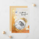 Elegant Orange Gold Glitter New Baby Announcement Card. A beautiful design featuring a cheerful moon, cloud, and stars on a burnt orange and gold glitter watercolor background. Add your baby's photograph to this modern and stylish card, personalize the details, and send it to your excited friends and family. They probably can't wait to meet your bundle of joy! Please note: we added a black & white filter to the template photo. You can remove the filter if you prefer to showcase a colour photo.