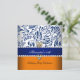 Elegant Orange Navy Blue Damask Pearl Party 2 Invitation