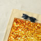 This elegant orange yellow glitter decorates your beach towel with a vibrant style.