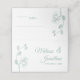 The front features a beautiful and delicate mint green orchids line drawing design, with the customizable bride and groom's names and wedding date. The back features the same elegant orchids design with two lines to write your guest's name and table number (by hand).
