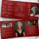 Modern red and white funeral program, offering a gender-neutral and elegant design ideal for any memorial, celebration of life, or funeral service. This professionally designed printed tri-fold program features a stylish red background paired with sophisticated white serif and script text, creating a respectful and refined aesthetic for honouring a loved one. The cover includes space for a large photo along with name and date placeholders, while the interior panels are thoughtfully arranged for an order of service, acknowledgments, obituary, and customizable poem or reading. With six customizable photos and clearly structured sections, this layout makes it easy to create a personalized tribute that reflects the life and memory of your loved one. Designed to suit all genders, faiths, and backgrounds, this versatile template is ideal for religious services, homegoing celebrations, and remembrance events. The elegant style, spacious formatting, and editable content fields allow you to create a meaningful keepsake that honours the life and legacy of your loved one with dignity.