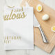 Elegant Ornament 60 and Fabulous 60th Birthday kitchen towel. 60 and fabulous saying in trendy golden script and a gold ornament. Personalize it with your name and the age.