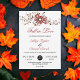 This elegant fall wedding invitation is perfect for a modern autumn wedding. The simple design features branches of leaves with elegant black and burgundy typography on a white background