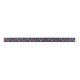 Colourful elegant Christmas tree ornaments on dark blue decorative holiday ribbon.