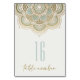 Elegant Ornate Gold Foil Teal Turquoise Mandala Table Number