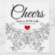 Elegant black and white personalised Wedding wine labels with red heart.