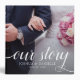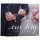 Remember your special day with this eye-catching edge-to-edge photo- and typography-based stretched album, which features elegant white script with the words "our story" rendered with artistic beginning and ending glyphs, set against an image of your choice. Customize with newlyweds' names and wedding date.