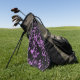 Add a touch of abstract fashion to your round with this golf towel, which features purple confetti fading into a black background!
