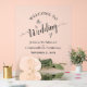 Welcome your wedding guests with this beautiful acrylic sign. The romantic design features a single long stemmed pale peach coloured rose lying on its side mirrored in a pool of water. The elegant script calligraphy title includes lacy swashes or flourishes on the ends of the letters, and the names of the couple and wedding date appear below.