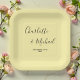 Elegant Pale Yellow Script Minimalist Wedding Paper Plate