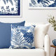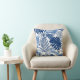 Elegant Palm Leaves Blue White Throw Pillow