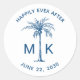 Elegant Palm Tree Monogram Blue Tropical Wedding Classic Round Sticker