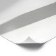 A photorealistic, abstract 3D composition showcasing an intricately folded and layered white paper structure. The design features a sleek, complex architectural form achieved through precise folding techniques, resulting in a refined geometric silhouette. Dramatic studio lighting from one side casts deep, sharp shadows that accentuate the shape, depth, and textured surface of the paper, emphasizing its craftsmanship and dimensionality. The background is a seamless, neutral off-white, providing a minimalist setting that highlights the clean, sophisticated aesthetic. This image is ideal as a modern, elegant background or visual centerpiece, embodying clarity, structure, and refined artistry.