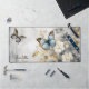 Elégant papillon Floral Nom personnalisé Mat de bureau propose des papillons bleus avec fleurs blanches, bleues et dorées sur un arrière - plan abstrait et personnalisées avec votre nom dans la typographie de script de calligraphie moderne. Parfait comme cadeau pour elle, sa famille et ses amis pour l'anniversaire, Noël, vacances, Fête des Mères, soeur, femme, partenaire, meilleurs amis, collègues de travail et plus encore. Conçu par ©Evco Studio www.zazzle.com/store/evcostudio