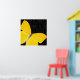 Papillon jaune sur une affiche arrière - plan noire damasée.
