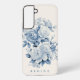 Elegant Pastel Blue Watercolor Roses Personalized Samsung Galaxy S22+ Case
