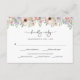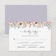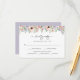This party RSVP card features an elegant watercolor graphic of burgundy colored flowers and green leaves on a white background. The backside offers a light purple background.
