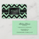 Elegant Pastel Green and Black Chevron Pattern Business Card