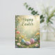 Elegant Pastel Happy Easter with Flowers and Eggs Postcard