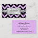Beautiful pastel lavender / purple / violet and black Chevron zig-zag pattern and a silver metallic ribbon. Salon and Spa business cards.