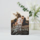 Elegant Spa Mint Pastel Green Typography with Marble Back and Full Bleed Photo Save the Date Cards are elegant trendy and soo chic, with dark fading ombre gradient overlay to highlight your text, and a calligraphy paired with a classic serif font. Personalize it with your photograph. Wedding Save the Date custom photo cards!