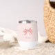 Sip your favourite wine in style with this elegant pastel pink thermal wine tumbler, featuring a delicate bow design and your custom name. Perfect for keeping your drink at the ideal temperature, this tumbler is double-walled and vacuum-insulated, ensuring your wine stays cool for hours. Whether you're enjoying a glass at home or gifting it to someone special, this chic wine tumbler is an ideal choice for any occasion. Its feminine design and personalized touch make it a thoughtful gift for birthdays, holidays, or celebrations.