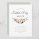 Elegant and romantic sage green eucalyptus leaves and delicate pastel, blush pink watercolor floral on white Mother's Day Brunch invitation. Contact us for help with customization or to request matching or coordinating products.