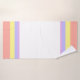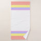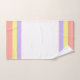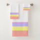 Elégant et élégant, de belles rayures pastel sur le set de serviettes de bain blanc. Belles rayures aux couleurs pastel orange, jaune, bleu et violet.