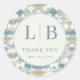 This Classic Round Sticker features a sophisticated design with a soft pastel color palette, including light blue, gray, white, and muted yellow. The layout is symmetrical, showcasing stylized wave patterns in the background that create a harmonious and soothing appearance. At the center, bold serif typography spells out initials "L" and "B," followed by the phrase "THANK YOU" in an elegant font, conveying a mood of gratitude and formality. Perfect for personalizing gifts or expressing appreciation, this sticker combines modern minimalism with classic elegance, making it versatile for various occasions.