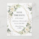 Elegant Pastel White Roses Eucalyptus Wedding Save The Date Postcard.