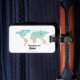 Elevate your travel style with this Modern Wanderlust Map Luggage Tag—perfect for the frequent flyer who values both elegance and function. The front features a minimalist world map outline in soothing pastel tones (turquoise, sandy beige, and sky blue), accented with a dotted flight path and subtle airplane silhouette. Customize the bold name field (e.g., “Property of Sarah W.”) to make it truly your own.