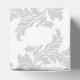 This design features elegant vintage leaf pattern and personalized wax seal image. The damask grey leaf patterned background contrasts against the black ribbon and red wax seal. The combination of grey, red, black and white colours create a sophisticated, trendy and chic style. Elegant wedding favour box design with modern elements. The simple setup of the typography gives it a distinct style. Matching wedding invitations and other stationery items are also available.