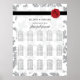 This design features elegant vintage leaf pattern and personalized wax seal image. The damask grey leaf patterned background contrasts against the black ribbon and red wax seal. The combination of grey, red, black and white colours create a sophisticated, trendy and chic style. Elegant wedding seating chart design with modern elements. The simple setup of the typography gives it a distinct style. Matching wedding invitations and other stationery items are also available.
