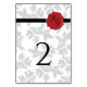This design features elegant vintage leaf pattern and personalized wax seal image. The damask grey leaf patterned background contrasts against the black ribbon and red wax seal. The combination of grey, red, black and white colours create a sophisticated, trendy and chic style. Elegant wedding table number design with modern elements. The simple setup of the typography gives it a distinct style. Matching wedding invitations and other stationery items are also available. Customize the number and purchase each tables number individually according to how many table numbers you need.